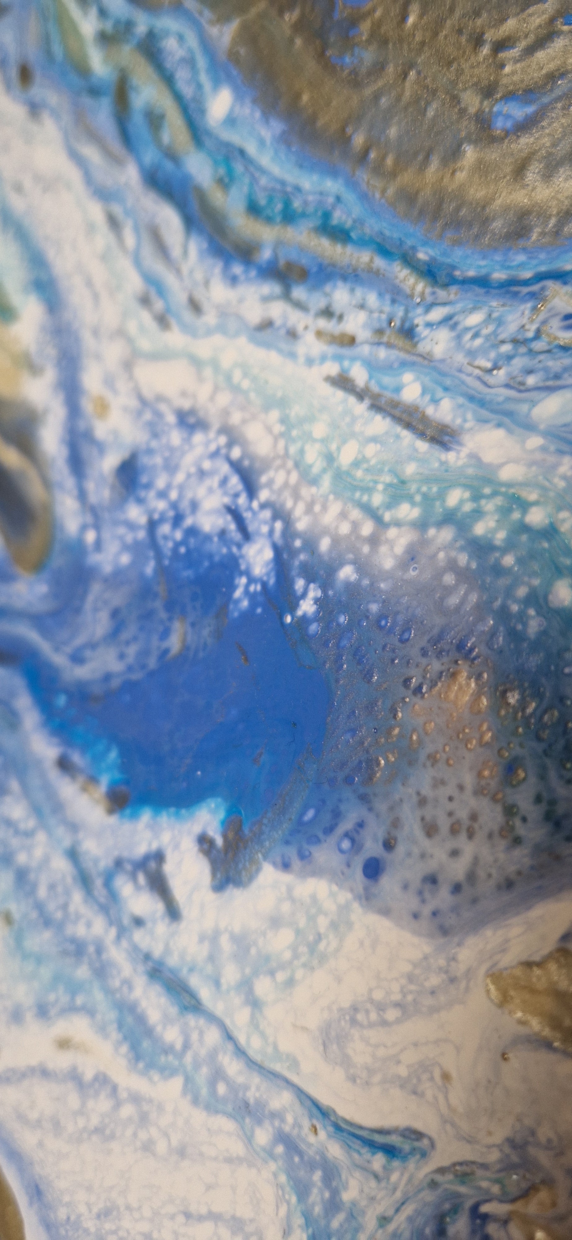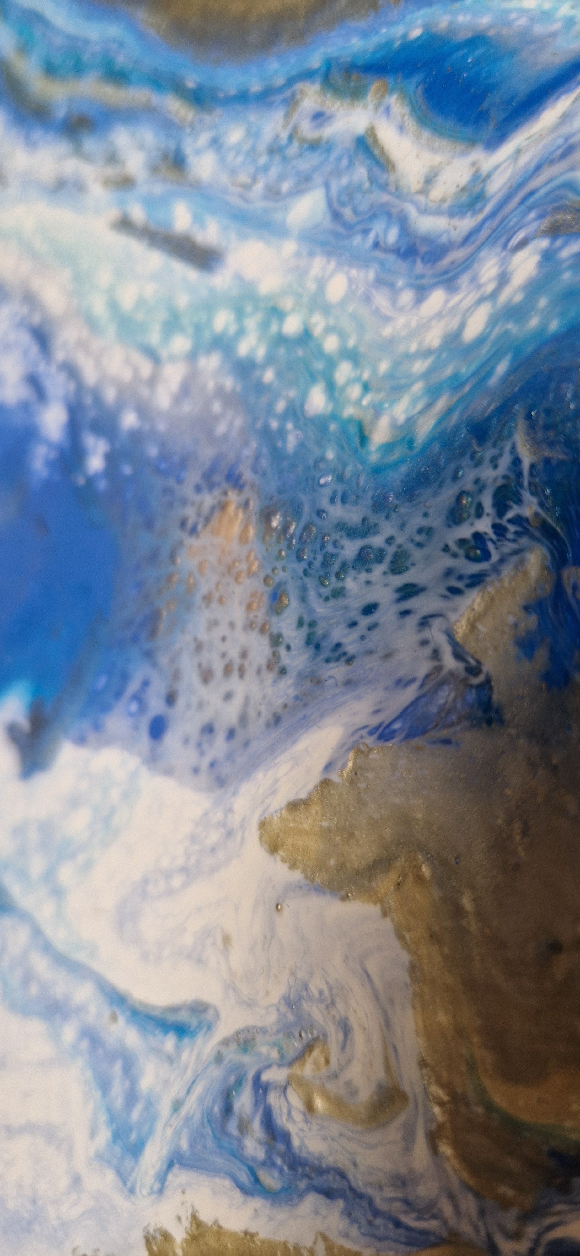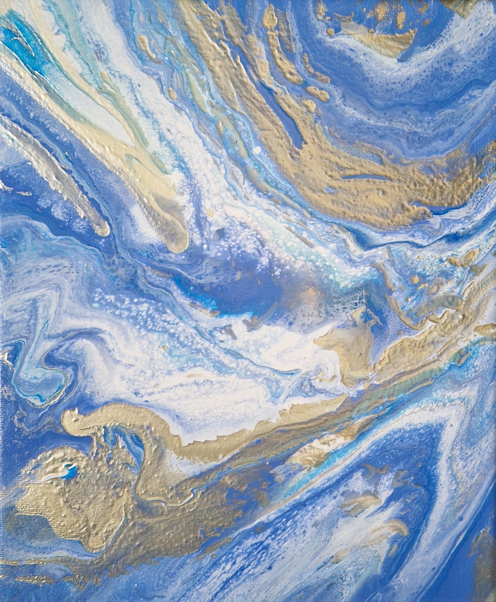 Pouringacrylgemälde in Blaugoldtönen
