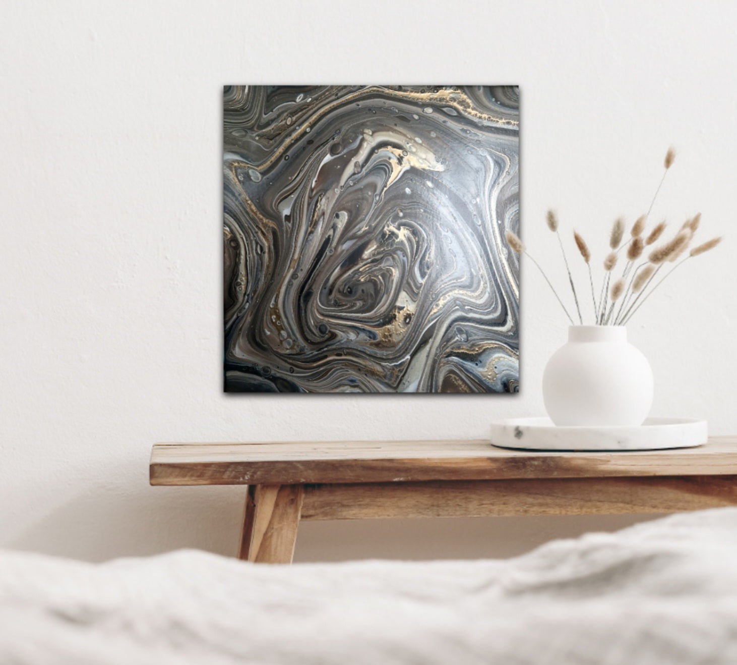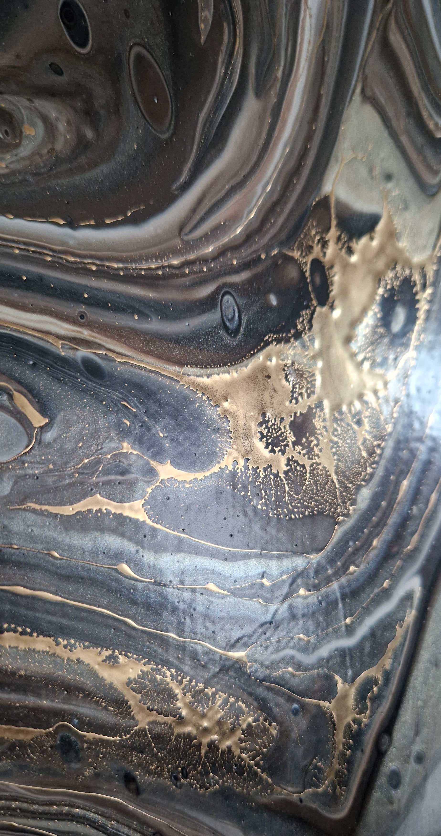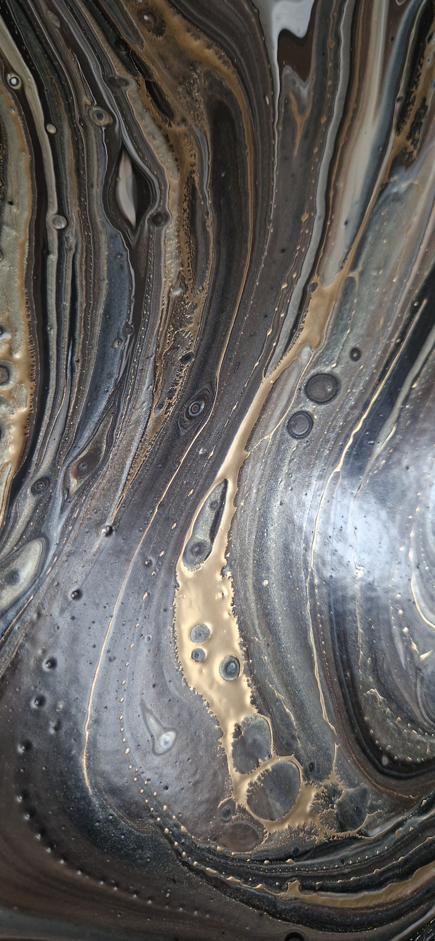 Pouringgemälde in braun- und goldtönen